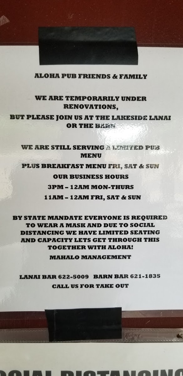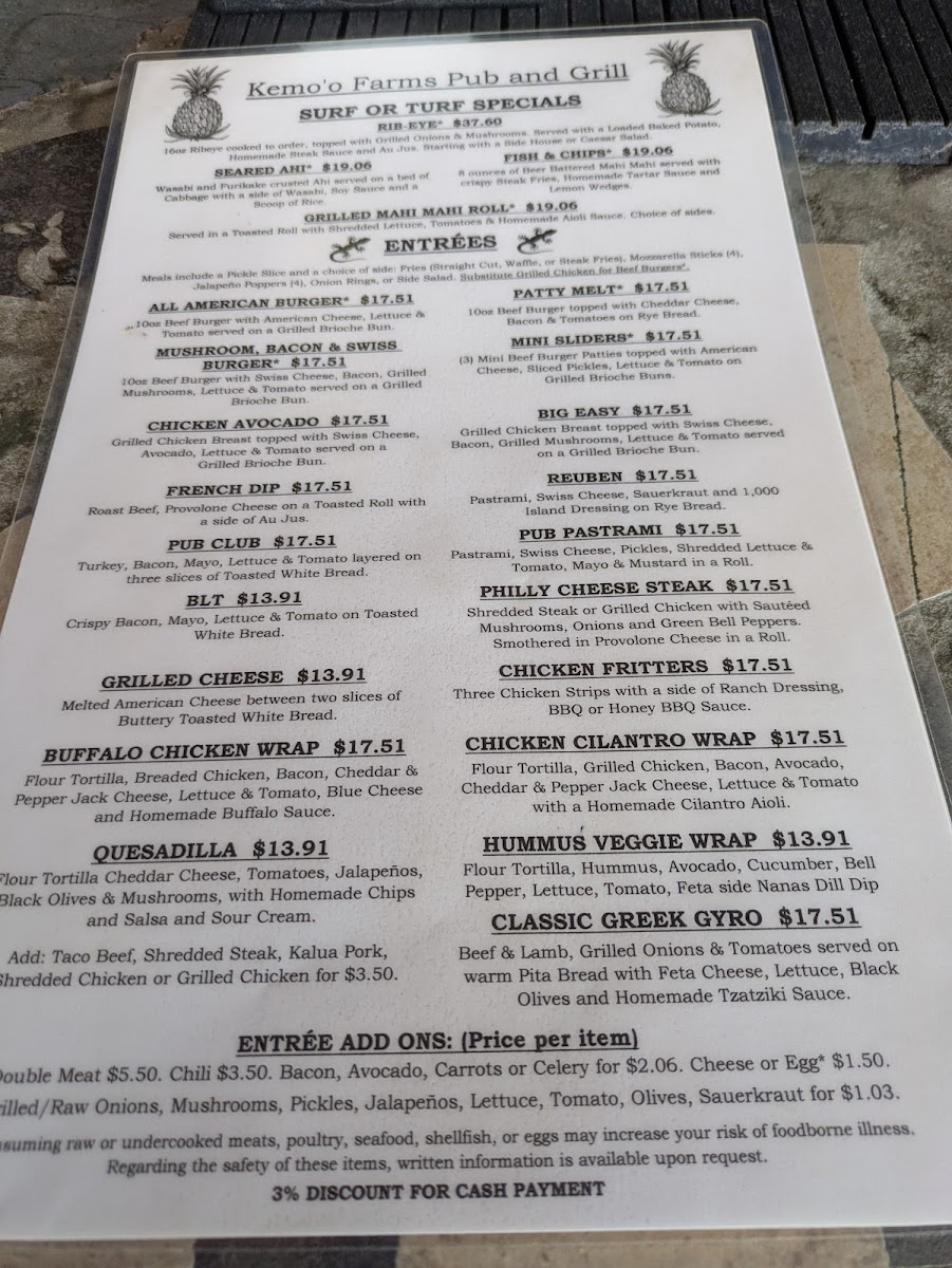 Kemo'o Farms Pub and Grill Menu
